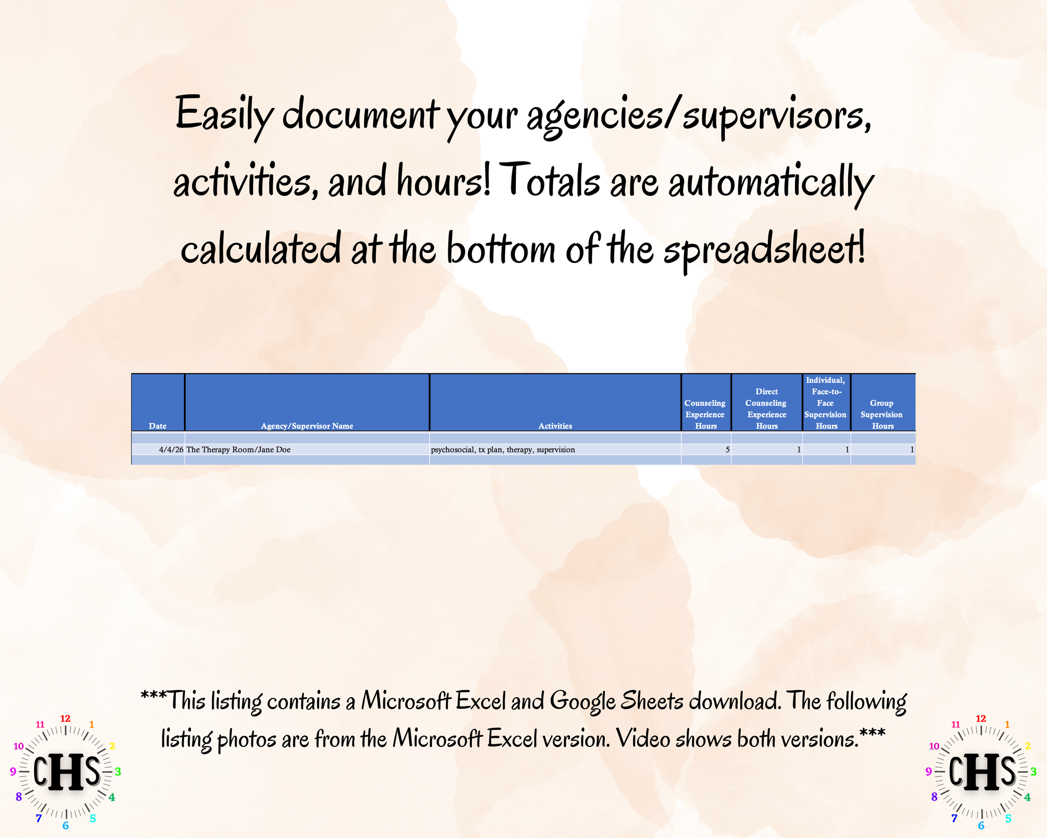 ✓ After purchase, you can instantly download your Microsoft Excel and Google Sheets spreadsheets and start counting your hours to get that brand new, shiny clinical license!