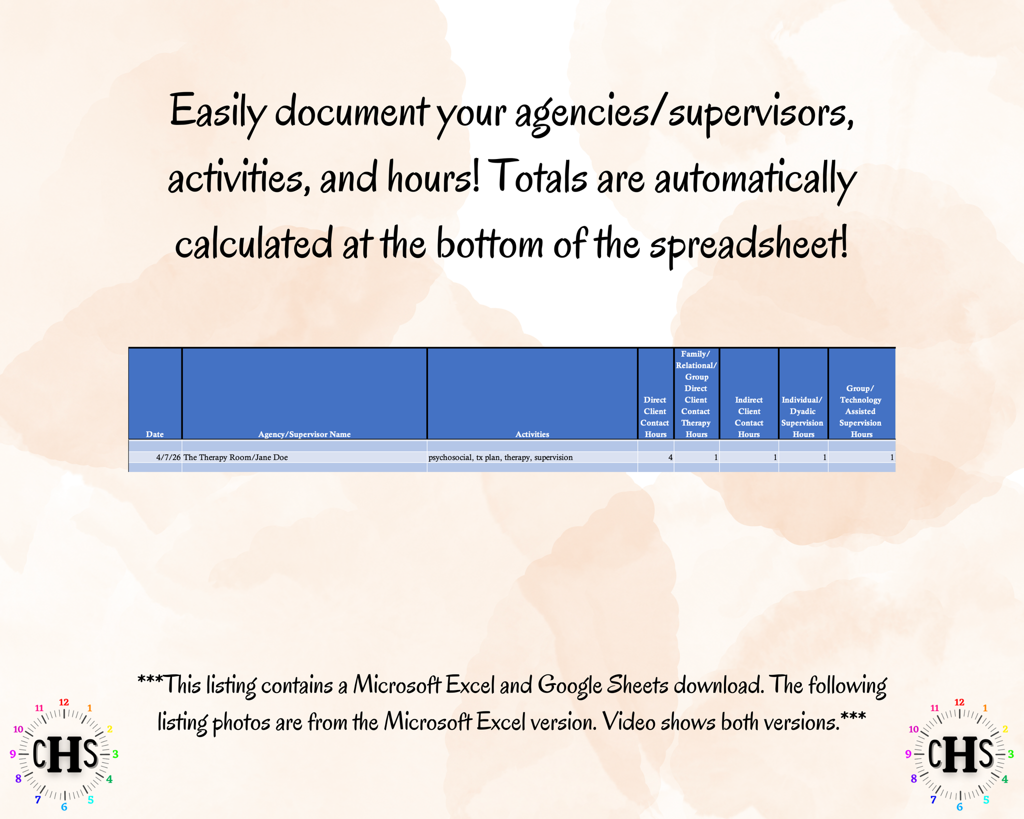✓ After purchase, you can instantly download your Microsoft Excel and Google Sheets spreadsheets and start counting your hours to get that brand new, shiny clinical license!
