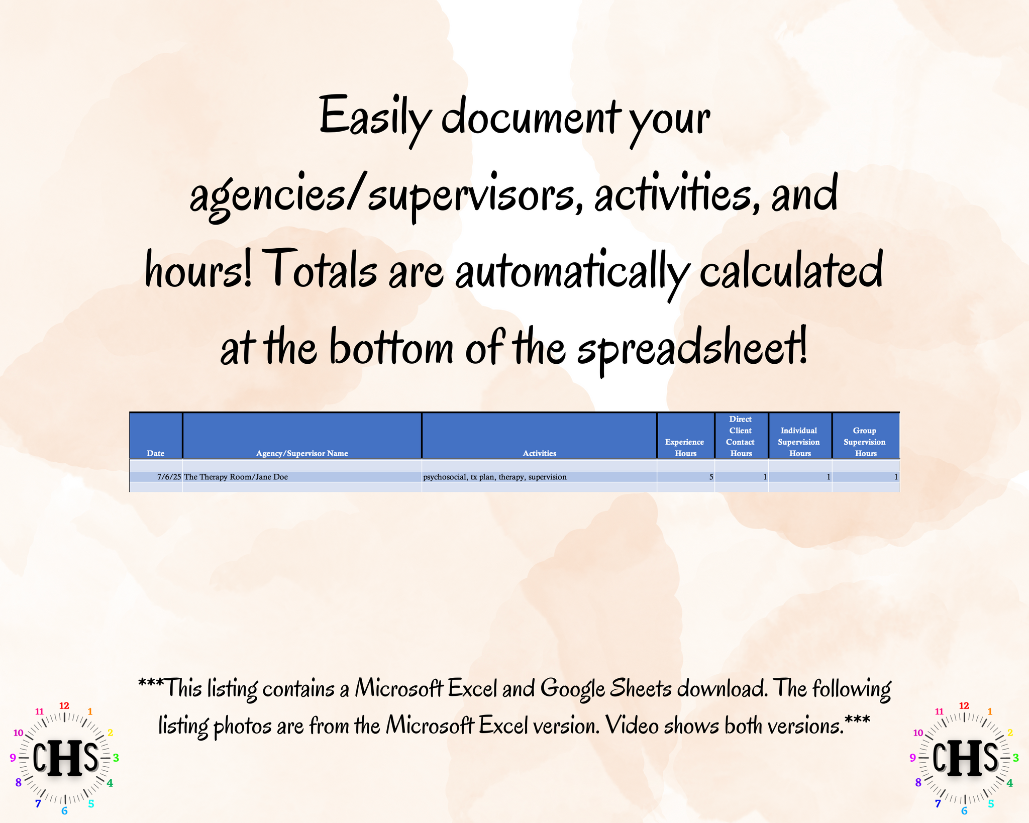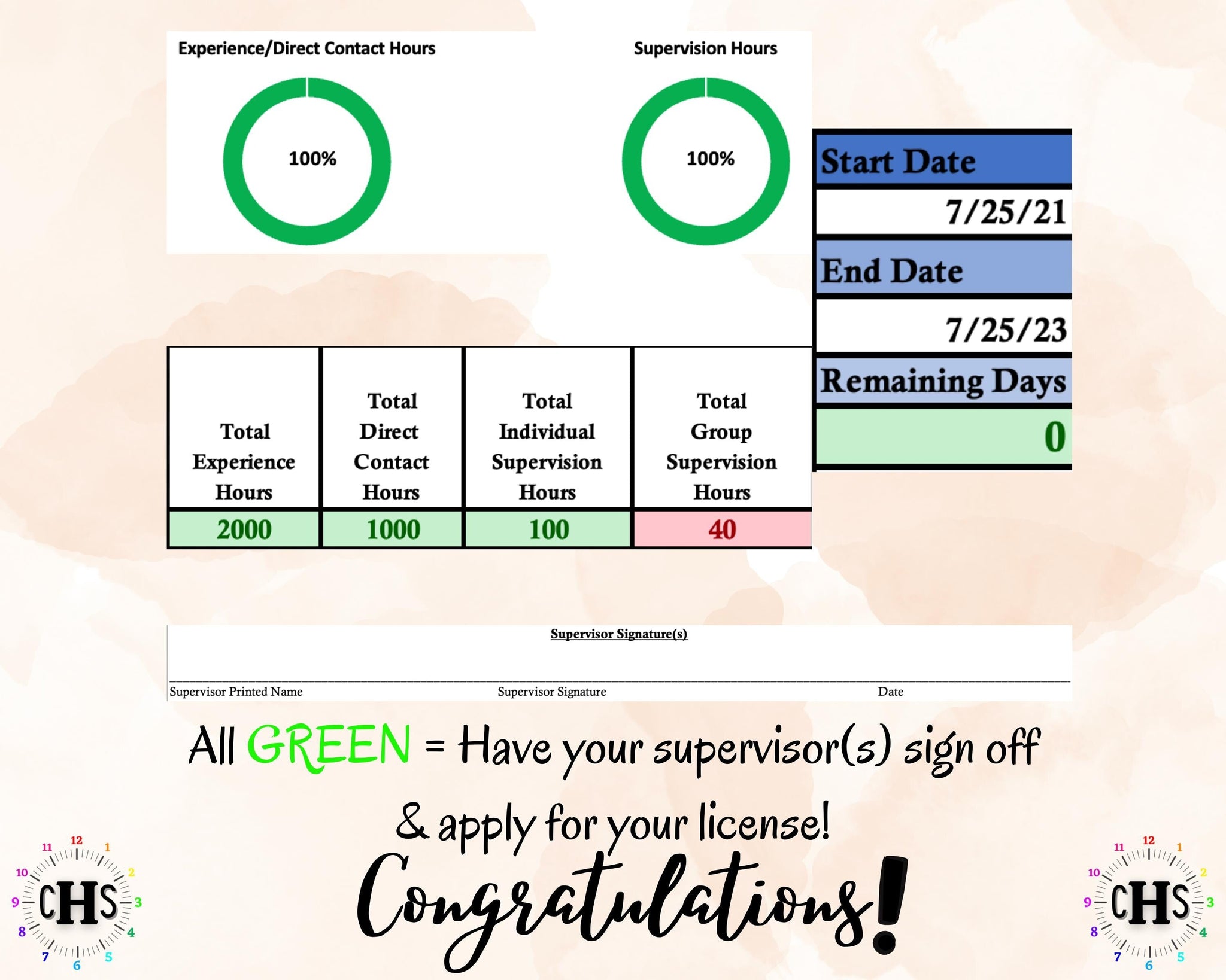 ✓ After purchase, you can instantly download your Microsoft Excel and Google Sheets spreadsheets and start counting your hours to get that brand new, shiny clinical license!