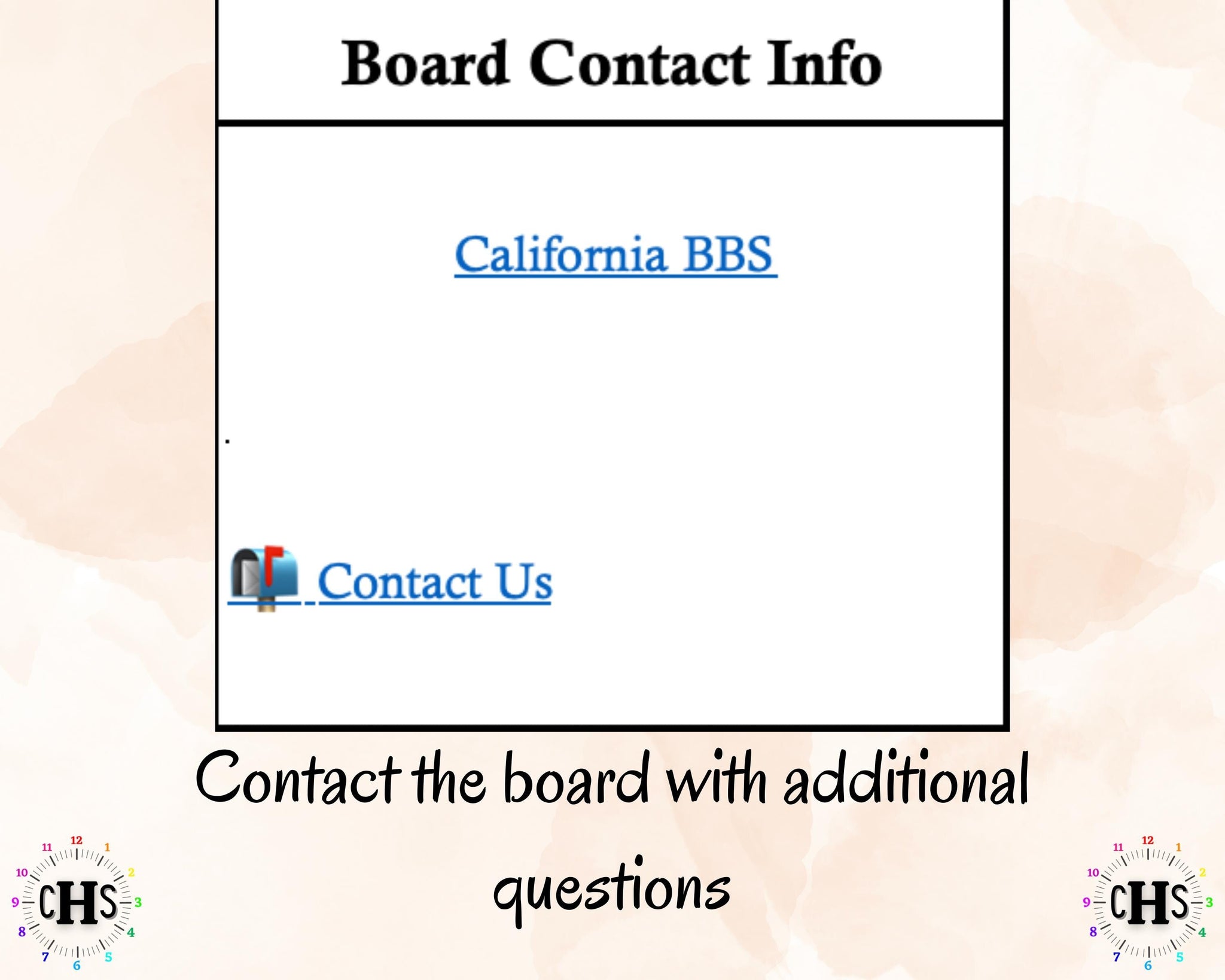 ✓ Board contact info with hyperlinks that allow you to quickly jump to the board’s website, email/message/chat, or call the board with additional questions!